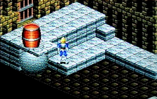 大玉とタル爆弾の部屋はこのような配置にしてタル爆弾を扉の前まで押し込んで着火すればOKです。このゲームは時間差で動かす仕掛けが多いような気がします。