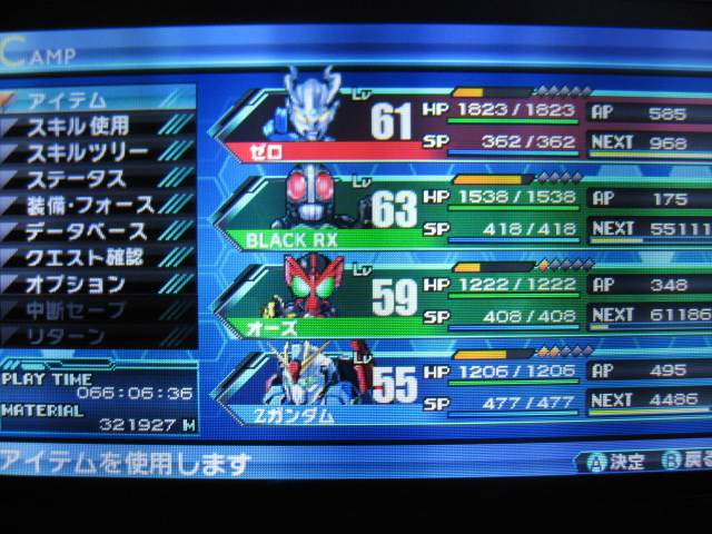 私がチョイスしたパーティーは、ウルトラマンゼロ、仮面ライダーBLACK RX、仮面ライダーオーズ、Zガンダムです。